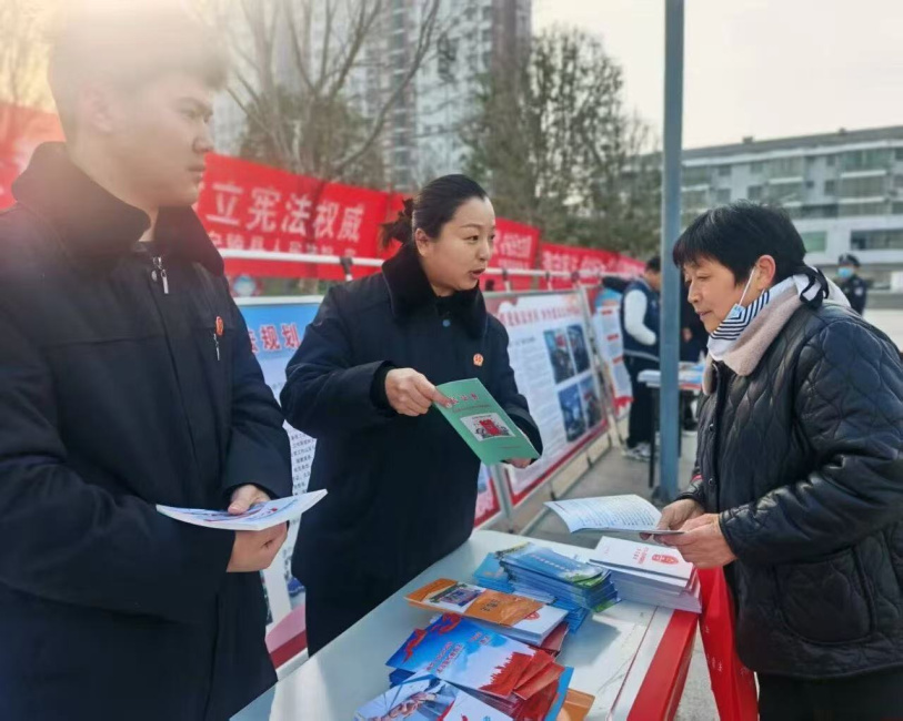法院工作人员在文化广场摆开“普法摊位”,把宪法手册和法律知识递到居民手边。从老人关心的权益保障,到日常的法律疑问,都能在这“零距离”的交流里找到答案——宪法从不是书本里的条文,是守护生活的“身边法”。